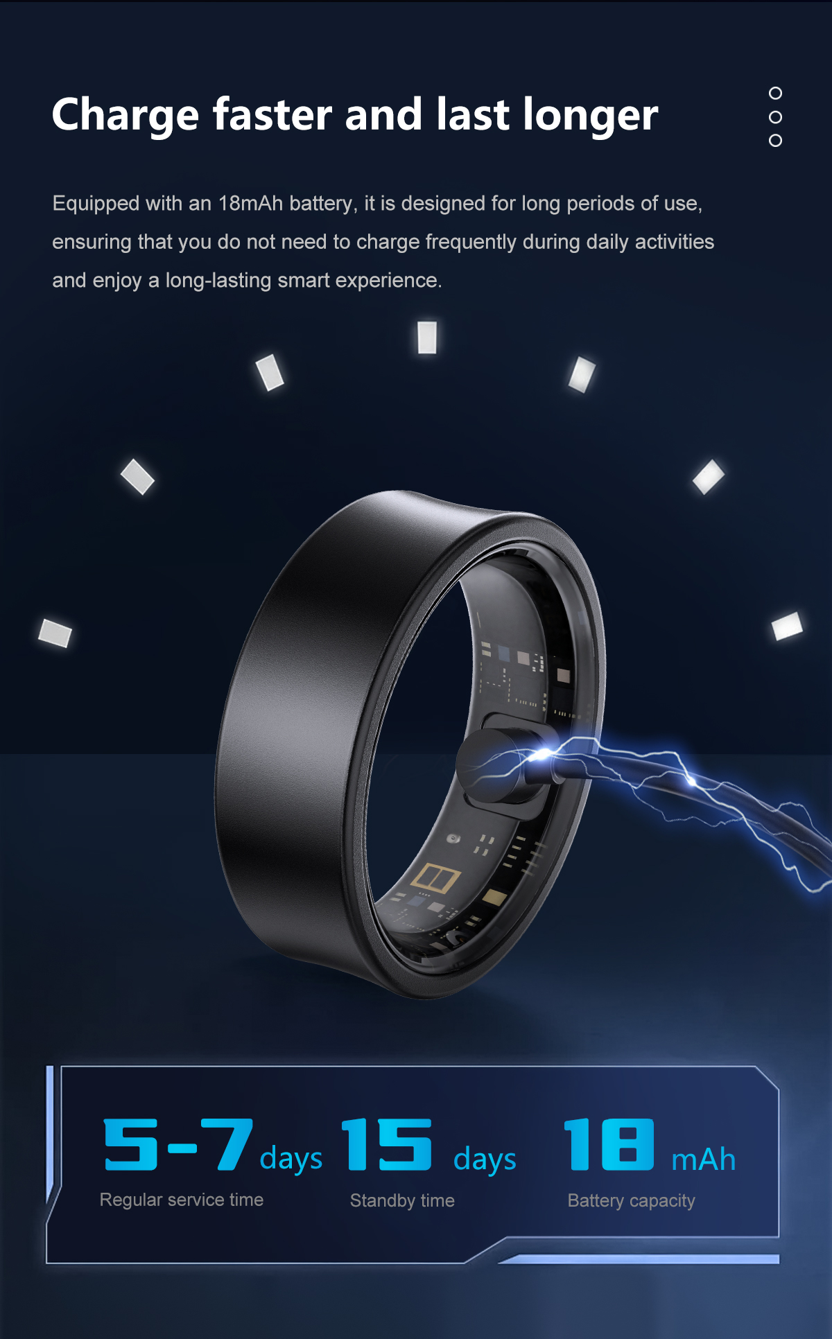 【Long Battery Life】After Sleep Ring is fully charged, it can be used continuously for up to 5-7 days, Paired with free 300mAh mini charging case, Fitness Tracker Ring can provide 10-15 cycles of charging for the ring, and there is no need to worry about electricity frequently