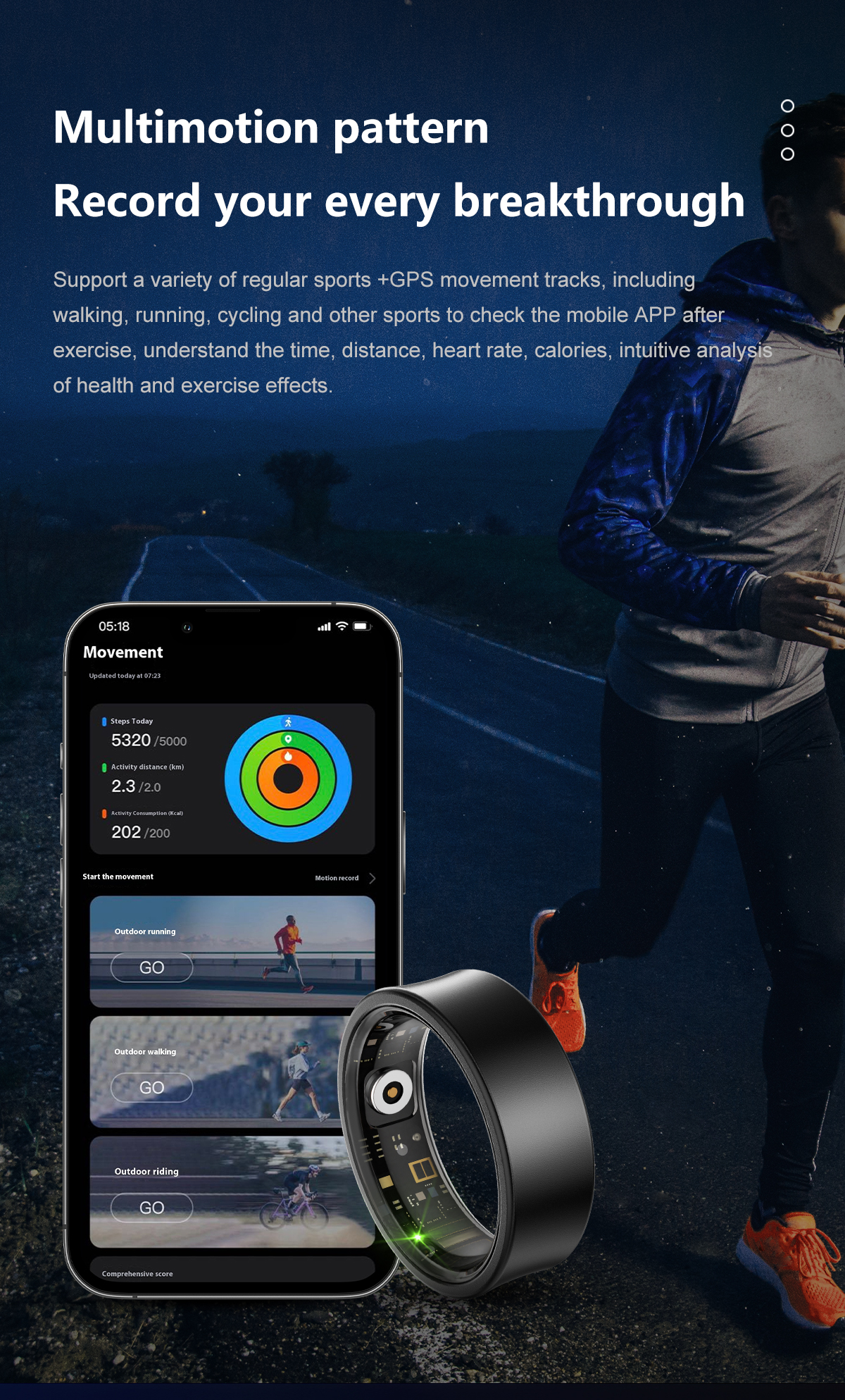 【Remote Photography】Smart rings Supporting the remote photo function, users can remotely control the phone to take photos when needed. Just shake your finger twice quickly and the shutter button will be pressed